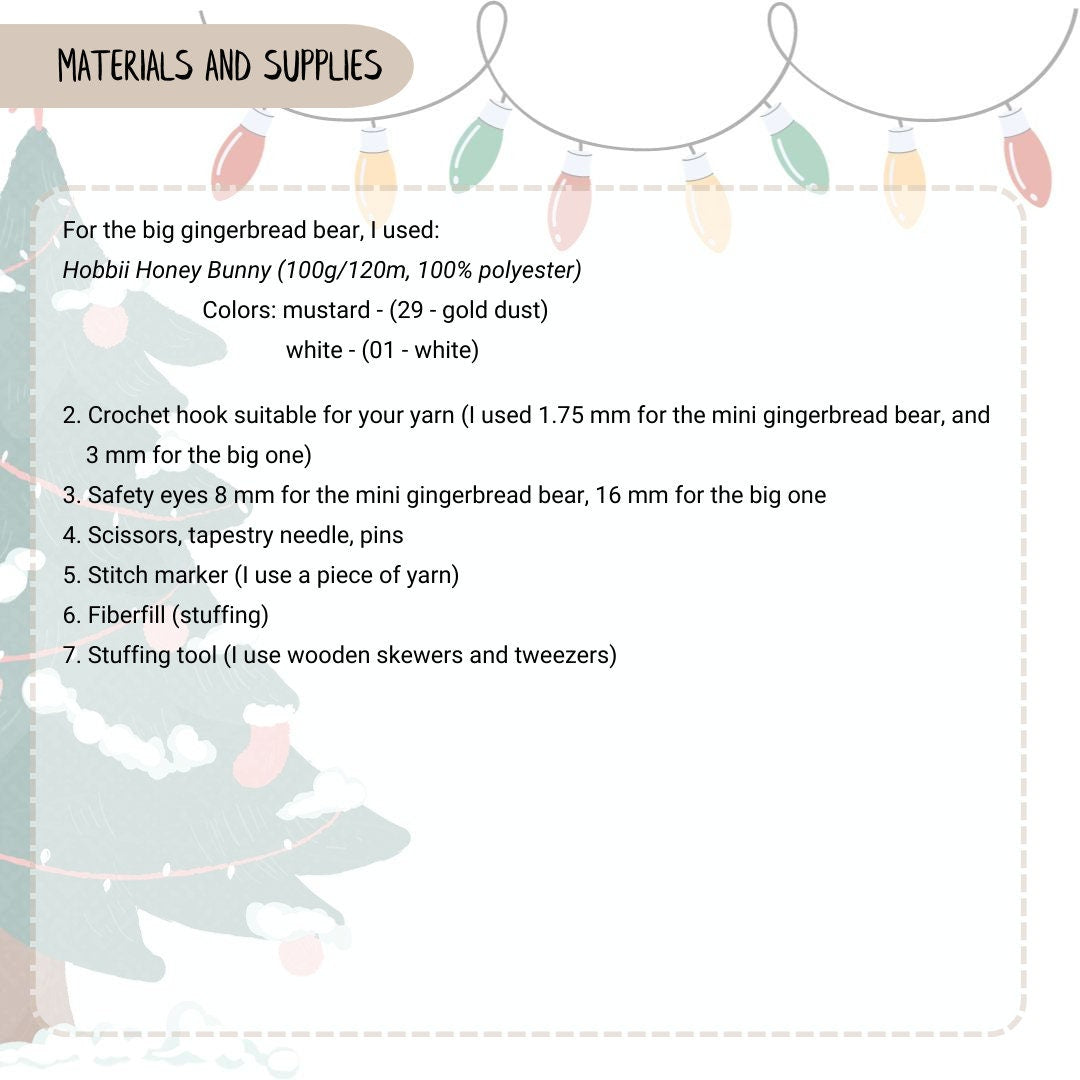 Christmas crochet Gingerbread Bear PDF pattern. It can be used as a Christmas tree ornament, as a keychain, as a bag charm or as a cute plushie. The Gingerbread Bear will be also a great Christmas gift!