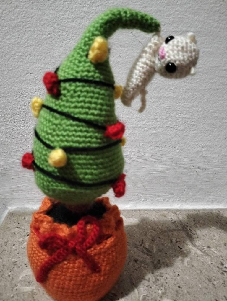Christmas Tree in a pot with a Naughty Cat Crochet Pattern