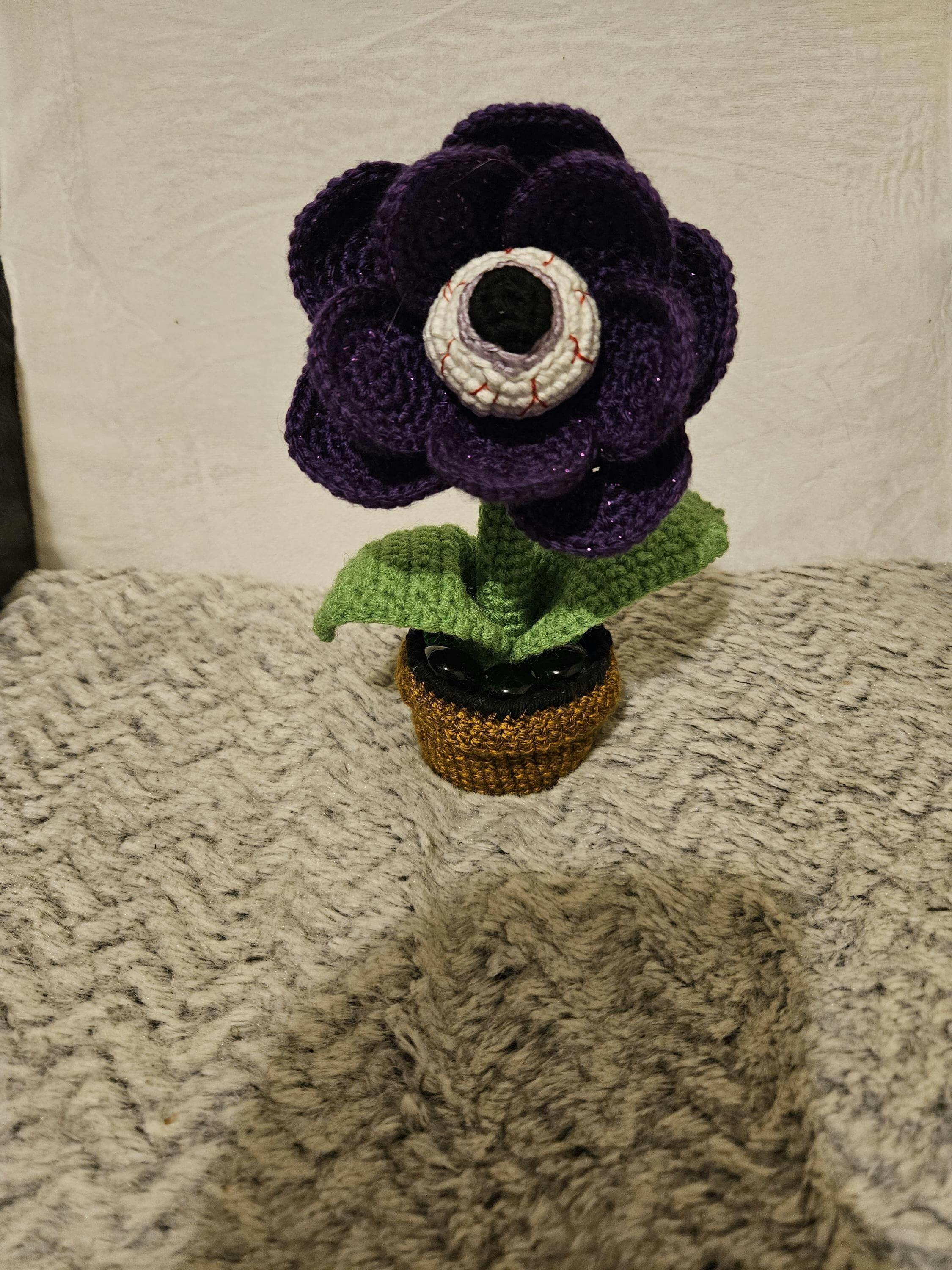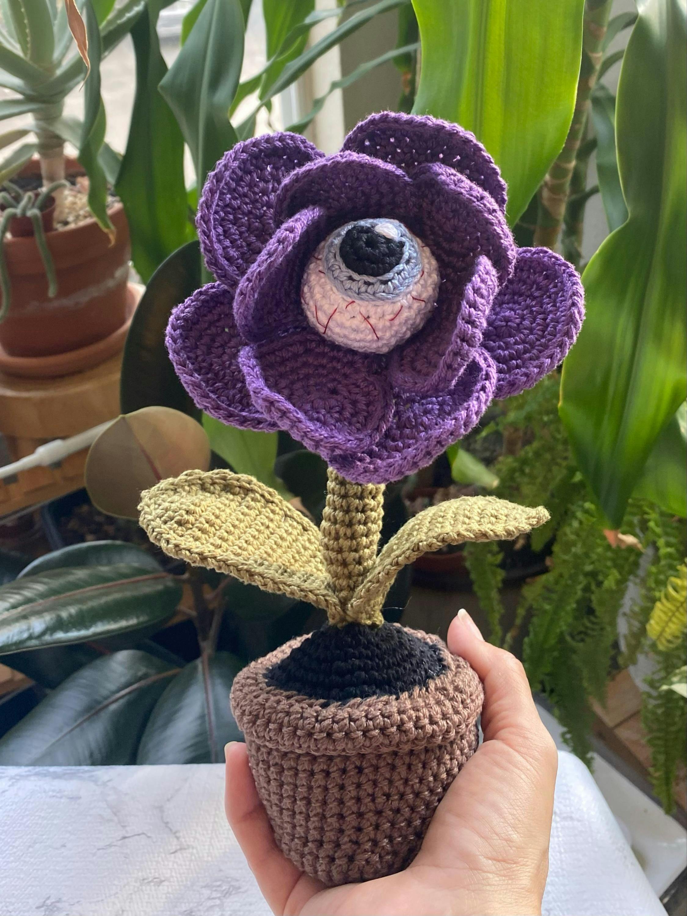 Using this crochet PDF pattern, you will be able to make this creepy Halloween Fake Flower Rose with an Eye decoration.